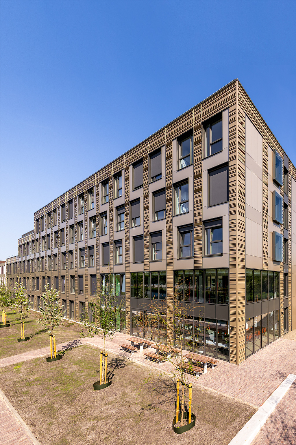 De appartementen zijn geproduceerd in de nieuwe fabriek van Daiwa House Modular Europe in Montfoort, die in mei 2024 werd geopend. Dankzij geavanceerde automatisering en robotisering kunnen de woningen in korte tijd en met hoge kwaliteit worden gebouwd. De buitengevel van het gebouw is afgewerkt met slimme stalen portalen. Enkele gevelprofielen doen ook dienst als ventilatieroosters voor het geïntegreerde Nilan-installatiesysteem. Door dit slimme gevelontwerp worden de naden van de modules onzichtbaar, waardoor het geheel eruitziet als één samenhangend gebouw.