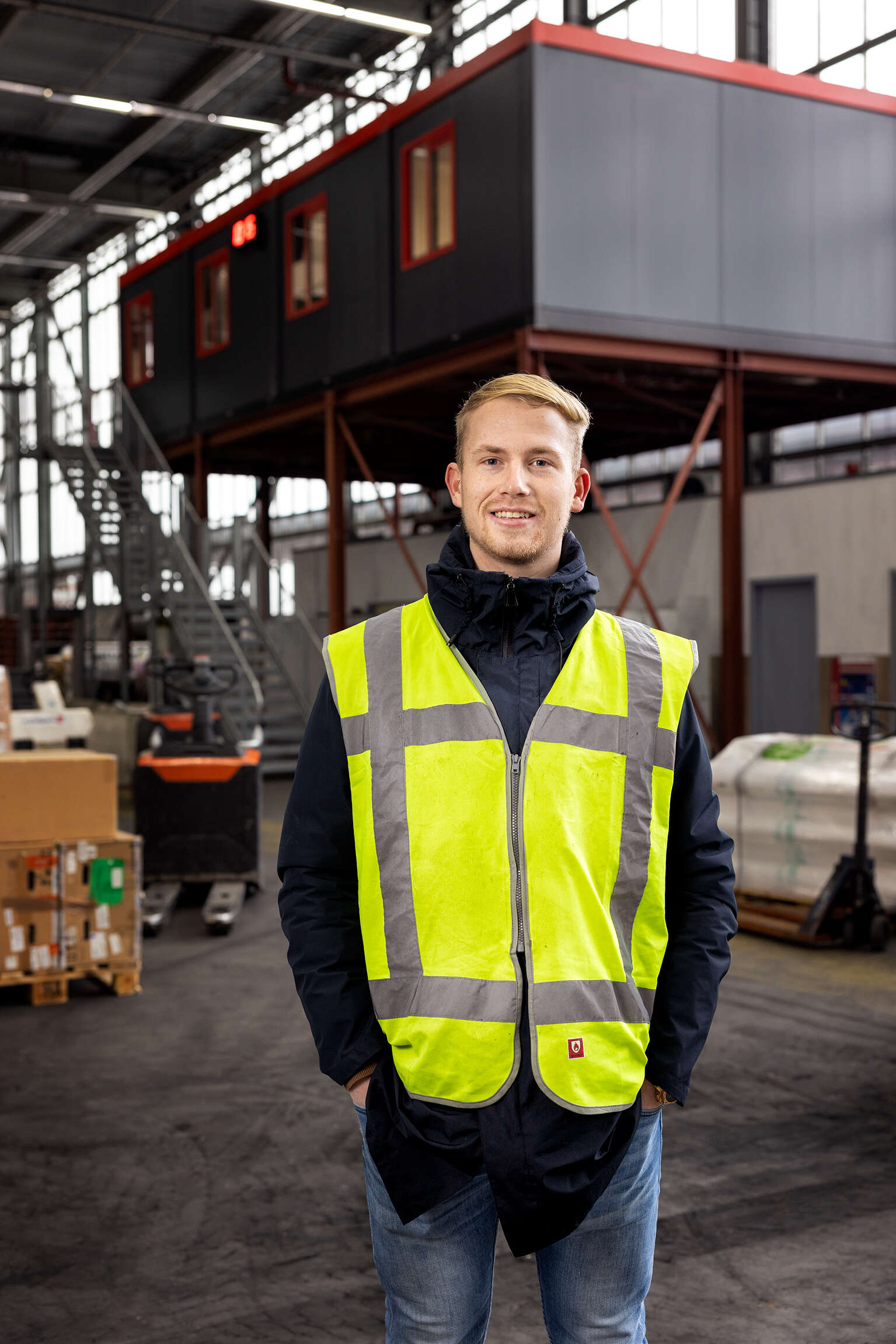 “Ik ben al vroeg begonnen met werken, altijd in de bouw. Mijn vader is timmerman in de buurt en van jongs af aan nam hij me al mee naar de werkplaats bij zijn werk. Van hem heb ik een hoop meegekregen. Tijdens de middelbare school werkte ik bij een bouwbedrijfje, in 2016 begon ik met bouwkunde op het mbo. In mijn tweede jaar kwam ik via een bekende aan mijn stage bij Jan Snel. De eerste helft deed ik mijn stage in de ene fabriekshal om de manier van bouwen te leren kennen, de tweede helft in een andere hal. In mijn derde jaar ging ik terug naar school en kwam ik opnieuw bij Jan Snel terecht. Deze keer op kantoor. Uiteindelijk ben ik hier ook afgestudeerd en kreeg ik mijn baan als werkvoorbereider aangeboden.”